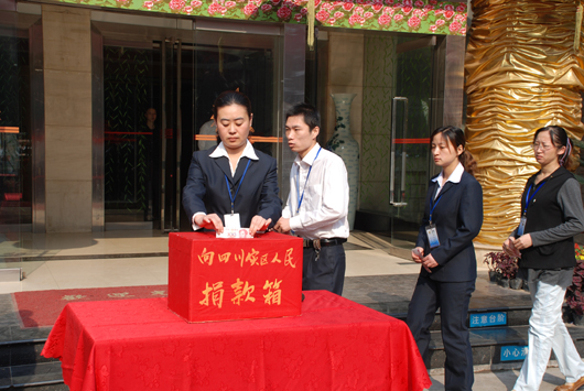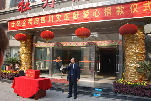 汶川震灾见证金榜真情。15日上午8时,公司组织了简单而隆重的献爱心捐款仪式,仪式由常务副总经理袁立新主持,每位世纪金榜人为地震灾区人民献出了自己的一份爱心,其景其情,感人至深,让我们久久难以平静。捐款前陌生老人和女士的捐款,张总讲话时的静默和哽咽,全体世纪金榜人的默哀,还有不是世纪金榜人的摄像师蒋老师的捐款,所有的这一切都见证了情义金榜。无论是捐30元,还是捐3000元,还是捐3万,都代表了我们每个世纪金榜人共同的心情和祝愿。还有奔波在外的市场人员纷纷联系公司进行捐款。另外,所有钱款的统计和最后的捐款,公司都会安排员工代表、中高层代表和财务人员全程参与,确保满载金榜人情谊和祝福的爱心捐款到达灾区,公司也会选择最直接的捐款机构和最直接的捐款方式把我们的爱心第一时间送到灾区。